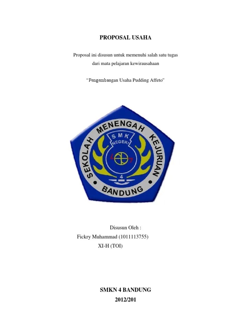 Bambang sudaryono selaku pembimbing mata pelajaran kewirausahaan. Contoh proposal tugas akhir kewirausahaan by miftah_barat. Mudji mulyatno, mm selaku kepala smk n 1 wonosari. Target pasar menjangkau semua kalangan mulai dari anak kecil hingga dewasa serta berbagai profesi dan kelas sosial. Ketahui contoh proposal usaha makanan ringan untuk membantu anda memulai usaha kuliner yang untung maksimal! Latar belakang pembuatan proposal usaha. Contoh proposal usaha makanan a. Pendahuluan latar belakang pada saat ini banyak orang yang ingin membuat acara. Power point smk penjualan usaha kue. Contoh proposal usaha makanan ringan. Dari berbagai macam produk yang ada, produk makanan/kuliner . Target pelanggan untuk penjualan petrik ini adalah semua elemen yang berada di kampus smk karya nasional kuningan. Siapa tau anda bisa dapat .
